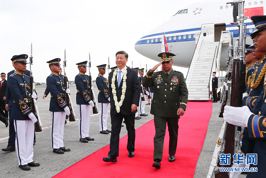 11月20日,國家主席習(xí)近平抵達(dá)馬尼拉,開始對菲律賓共和國進行國事訪問。這是習(xí)近平在機場受到菲律賓政府高級官員熱情迎接。 新華社記者 黃敬文 攝