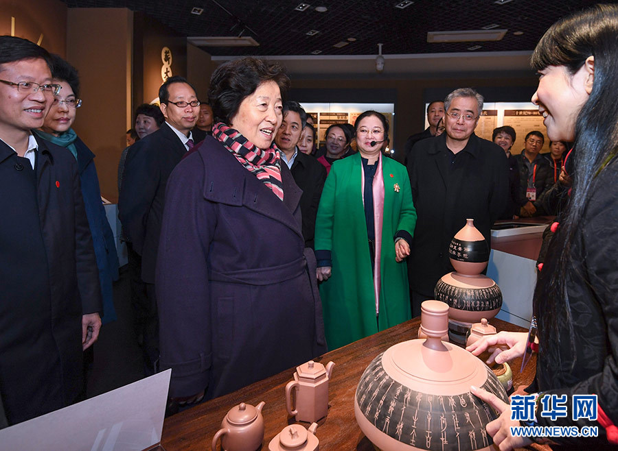 12月12日,中共中央政治局委員、國務院副總理、中央代表團副團長孫春蘭率中央代表團二分團,看望慰問欽州各族各界干部群眾,轉達以習近平同志為核心的黨中央的親切關懷和全國人民的美好祝福。這是孫春蘭在坭興陶博物館考察。 新華社記者 申宏 攝
