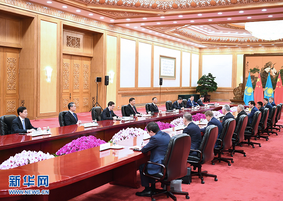 4月28日,國(guó)家主席習(xí)近平在北京人民大會(huì)堂會(huì)見哈薩克斯坦首任總統(tǒng)納扎爾巴耶夫。 新華社記者 李學(xué)仁 攝