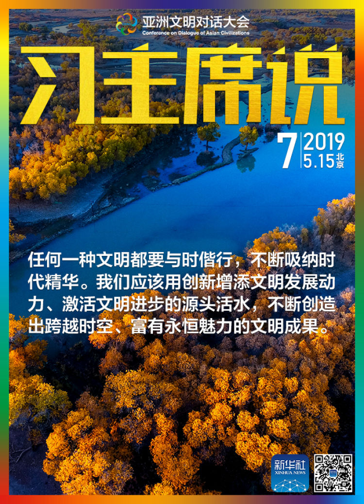 任何一種文明都要與時偕行,不斷吸納時代精華。我們應(yīng)該用創(chuàng)新增添文明發(fā)展動力、激活文明進(jìn)步的源頭活水,不斷創(chuàng)造出跨越時空、富有永恒魅力的文明成果。