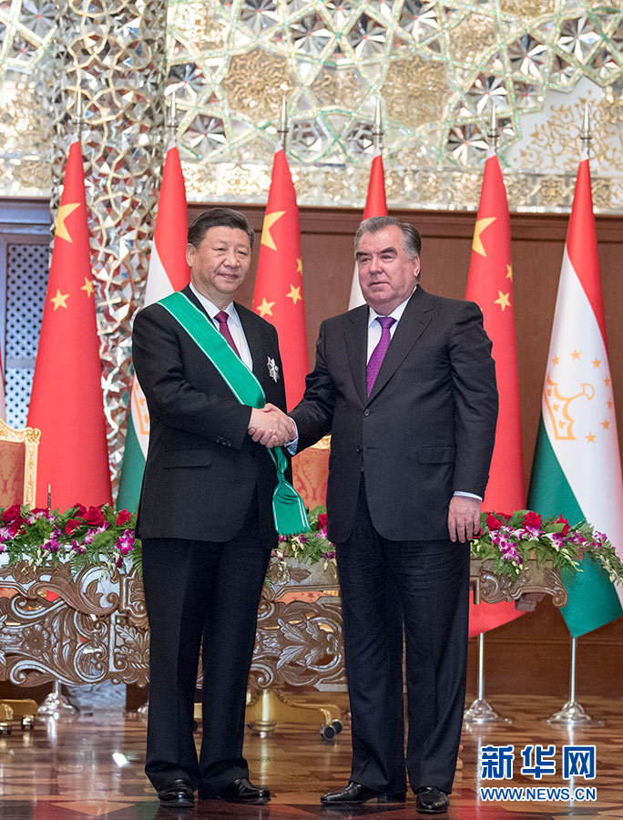 習(xí)近平出席儀式 接受塔吉克斯坦總統(tǒng)拉赫蒙授予“王冠勛章”