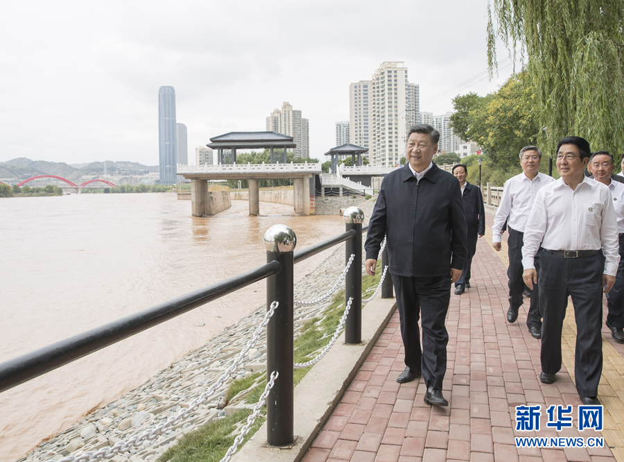 8月19日至22日,中共中央總書記、國家主席、中央軍委主席習(xí)近平在甘肅考察。這是21日下午,習(xí)近平在蘭州市黃河治理蘭鐵泵站項(xiàng)目點(diǎn),沿步道察看黃河兩岸生態(tài)修復(fù)和景觀建設(shè)情況。 新華社記者 王曄 攝
