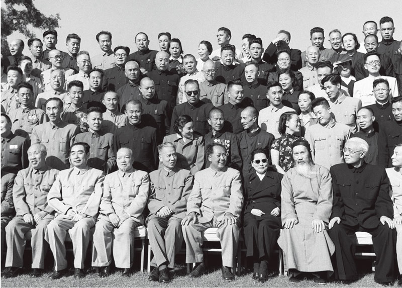 中華人民共和國第一屆全國人民代表大會第一次會議全體代表于1954年9月21日合影。毛澤東主席和代表們在一起。前排左起:董必武、周恩來、李濟(jì)深、劉少奇、毛澤東、宋慶齡、張瀾、林伯渠。 新華社稿 侯波/攝