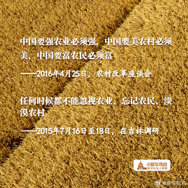 “農(nóng)業(yè)農(nóng)村工作,說一千、道一萬,增加農(nóng)民收入是關(guān)鍵”“中國(guó)要強(qiáng)農(nóng)業(yè)必須強(qiáng),中國(guó)要美農(nóng)村必須美,中國(guó)要富農(nóng)民必須富”……黨的十八大以來,以習(xí)近平同志為核心的黨中央關(guān)注農(nóng)業(yè)、關(guān)心農(nóng)村、關(guān)愛農(nóng)民,一起來學(xué)習(xí)總書記的金句? ????