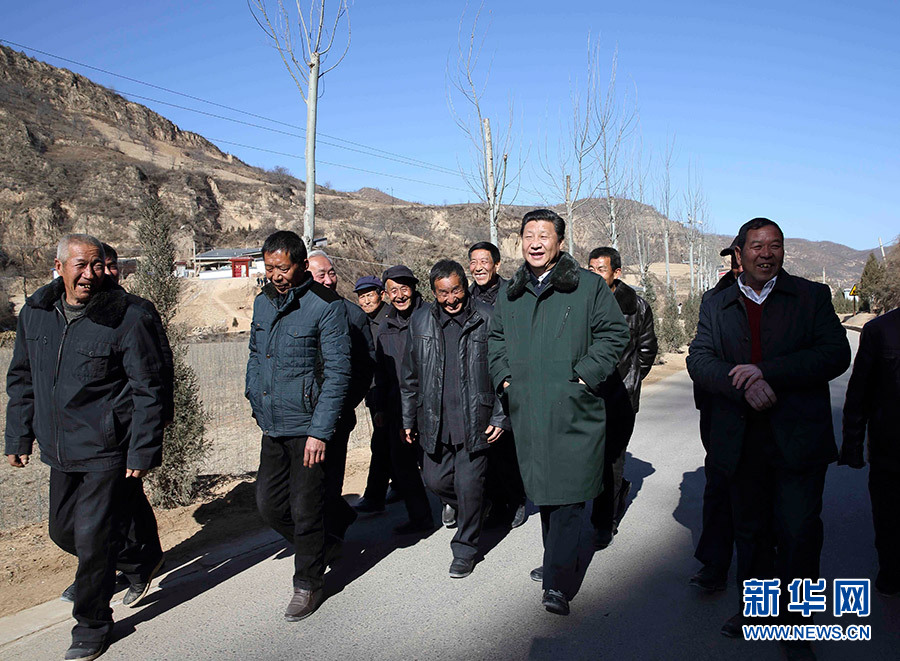 2015年2月13日,農歷羊年春節(jié)來臨之際,習近平在陜西延安市延川縣文安驛鎮(zhèn)梁家河村調研時同村民邊走邊聊。新華社記者 蘭紅光 攝