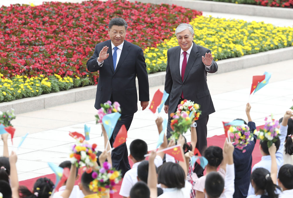 2019年9月11日,國家主席習(xí)近平在北京人民大會(huì)堂同哈薩克斯坦總統(tǒng)托卡耶夫舉行會(huì)談。這是會(huì)談前,習(xí)近平在人民大會(huì)堂東門外廣場為托卡耶夫舉行歡迎儀式。新華社記者姚大偉攝