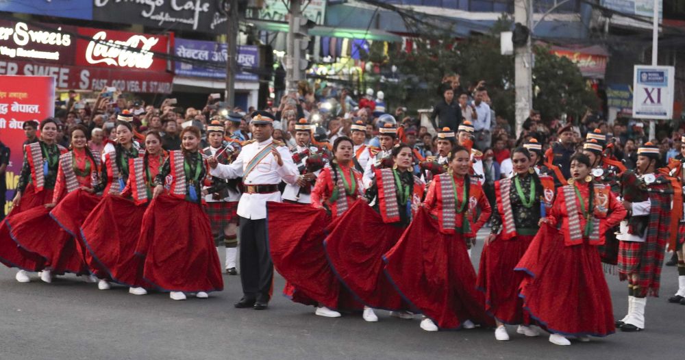 2019年10月12日,尼泊爾首都加德滿都,尼泊爾民眾載歌載舞,熱烈歡迎中國國家主席習(xí)近平來訪。新華社記者丁林?jǐn)z