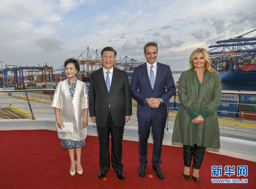 新華社雅典11月11日電(記者霍小光 駱珺 郝薇薇)當(dāng)?shù)貢r間11月11日,國家主席習(xí)近平和夫人彭麗媛在希臘總理米佐塔基斯夫婦陪同下,共同參觀中遠(yuǎn)海運比雷埃夫斯港項目。