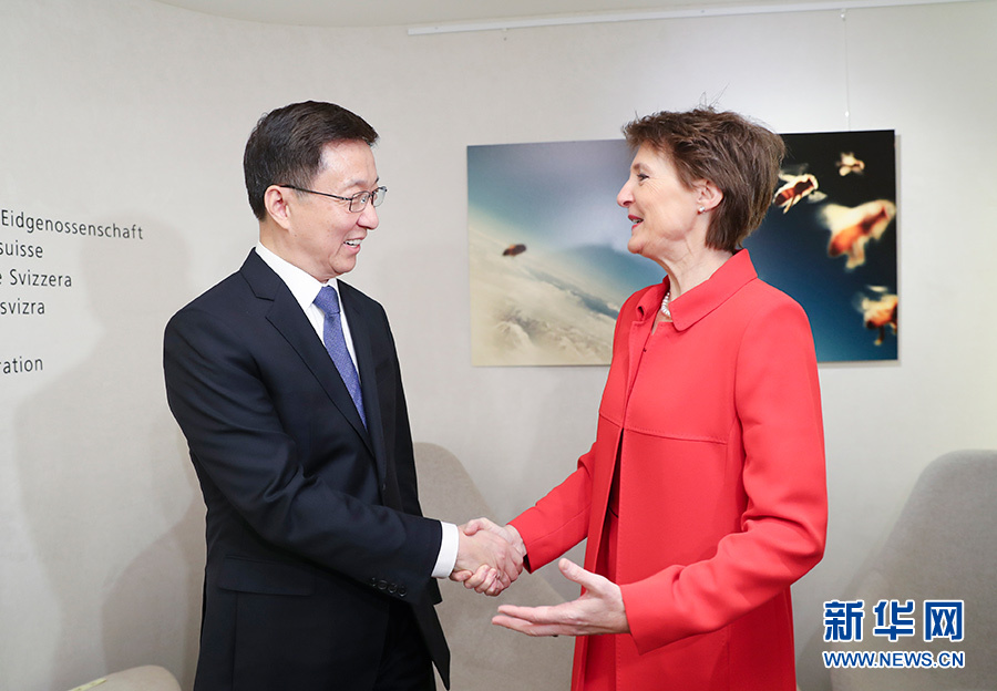 1月20日至21日,應(yīng)瑞士聯(lián)邦副主席帕姆蘭邀請(qǐng),中共中央政治局常委、國(guó)務(wù)院副總理韓正訪問(wèn)瑞士。這是1月21日,韓正會(huì)見(jiàn)瑞士聯(lián)邦主席索馬魯加。 新華社記者 丁海濤 攝