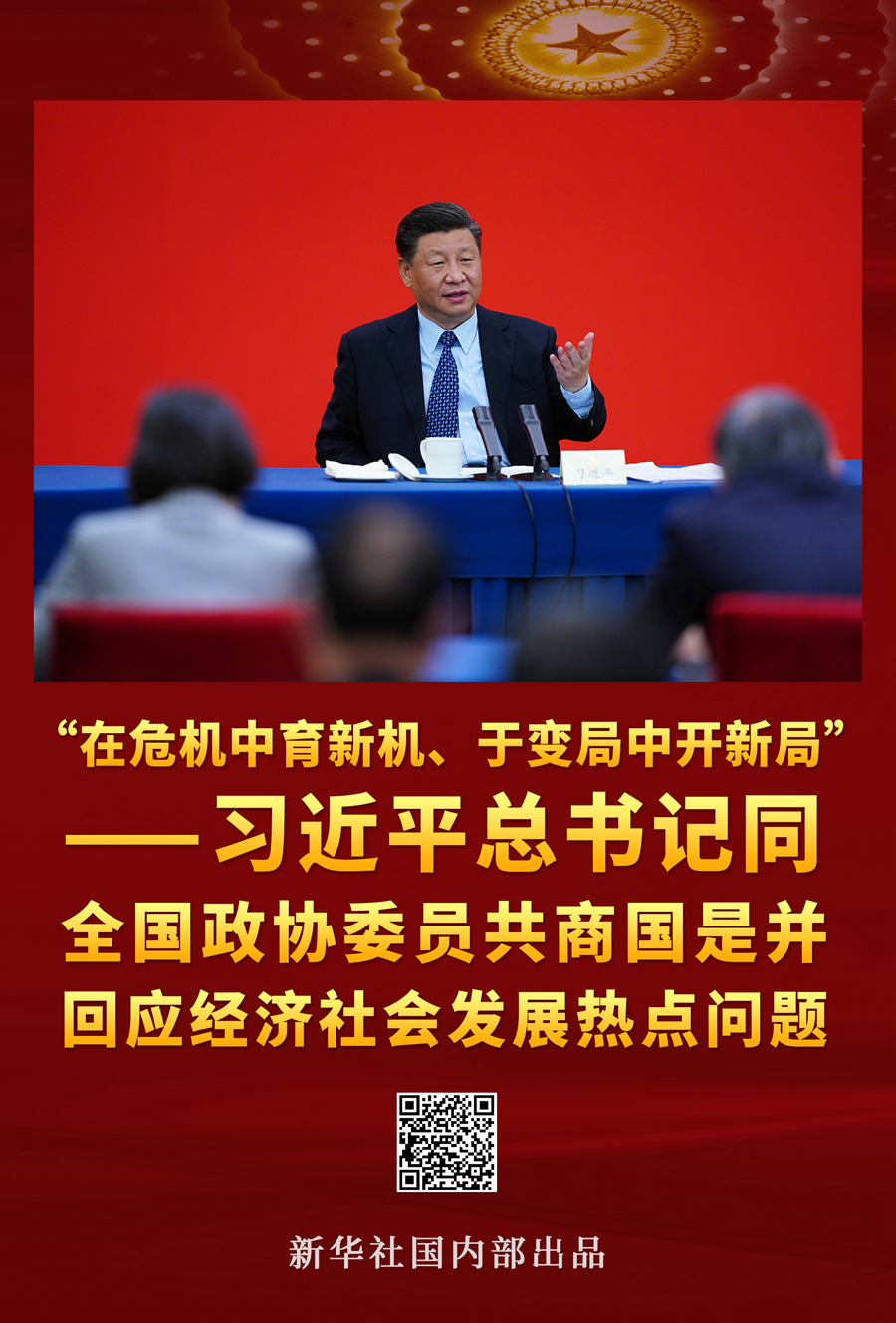 除了自己所在代表團(tuán)和解放軍代表團(tuán)每年必去,看望政協(xié)委員也不可少。今年看望政協(xié)經(jīng)濟(jì)界委員,總書記突出強(qiáng)調(diào)努力在危機(jī)中育新機(jī)、于變局中開新局。