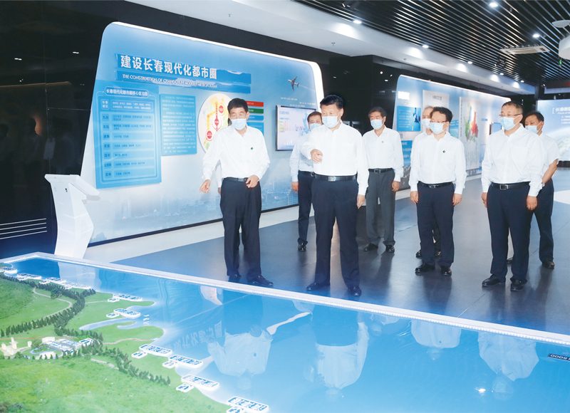 2020年7月22日至24日,中共中央總書記、國家主席、中央軍委主席習近平在吉林省考察。這是7月23日下午,習近平考察長春新區(qū)規(guī)劃展覽館,了解新區(qū)規(guī)劃建設情況。 新華社記者 王曄/攝