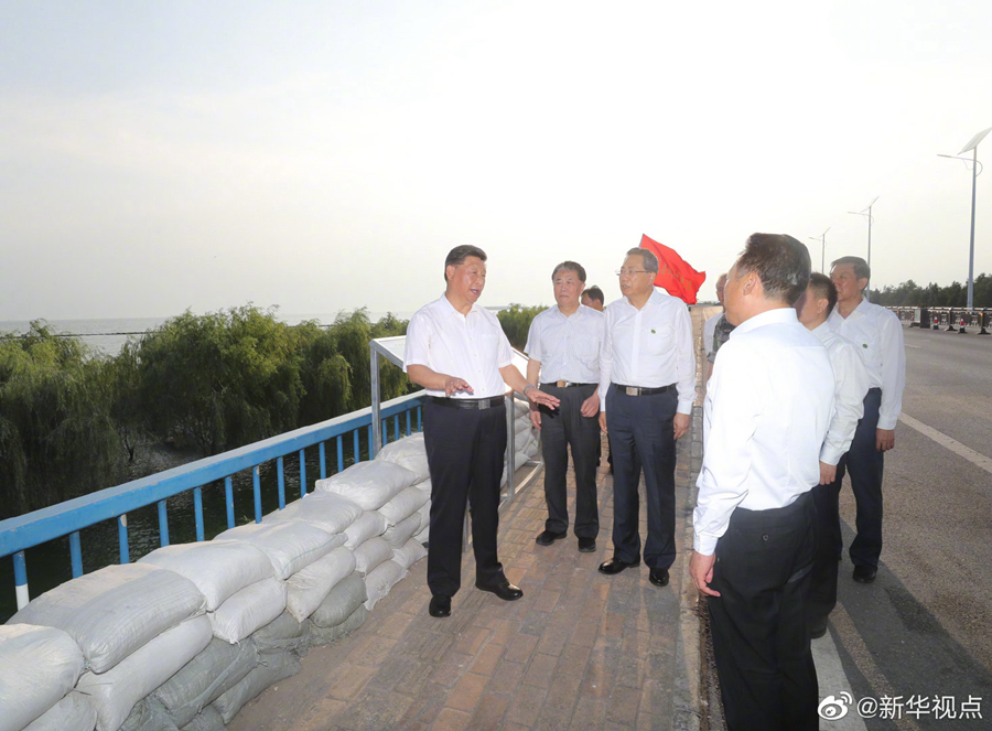 19日下午,正在安徽考察調(diào)研的習(xí)近平總書記來到合肥市肥東縣十八聯(lián)圩生態(tài)濕地蓄洪區(qū)巢湖大堤羅家疃段,察看巢湖水勢水情。他強調(diào),洪水退后,要防止蓄洪區(qū)內(nèi)出現(xiàn)水退人進的現(xiàn)象。我們要實現(xiàn)人與自然和諧相處,就不能同自然爭奪發(fā)展空間。八百里巢湖要用好,更要保護好、治理好,使之成為合肥這個城市最好的名片。(文字記者:張曉松 攝影記者:鞠鵬 王曄 燕雁)