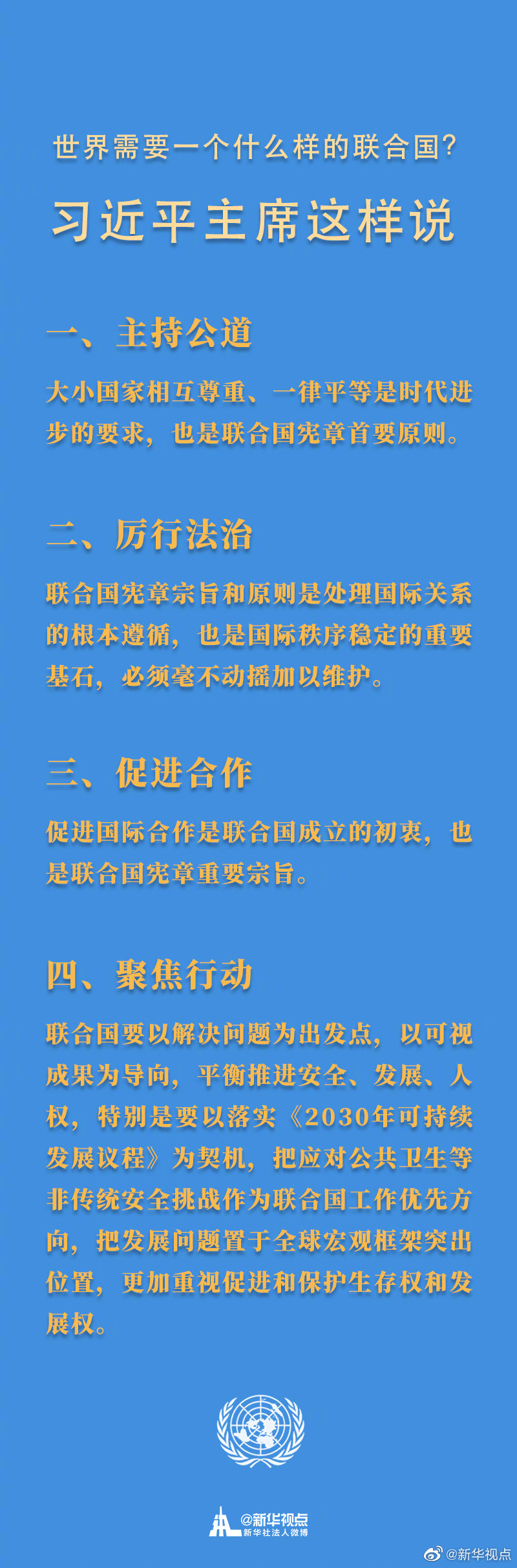 世界需要一個什么樣的聯(lián)合國?在后疫情時代,聯(lián)合國應該如何發(fā)揮作用?習近平主席在聯(lián)合國成立75周年紀念峰會上這樣說
