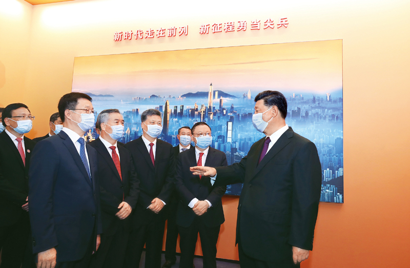 2020年10月14日,深圳經(jīng)濟特區(qū)建立40周年慶祝大會在廣東省深圳市隆重舉行。中共中央總書記、國家主席、中央軍委主席習(xí)近平在會上發(fā)表重要講話。這是當天上午,習(xí)近平等參觀“從先行先試到先行示范——慶祝深圳經(jīng)濟特區(qū)建立40周年展覽”。 新華社記者 鞠鵬/攝
