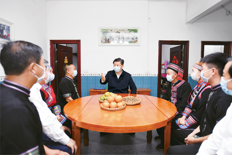 2020年9月16日至18日,中共中央總書記、國家主席、中央軍委主席習(xí)近平在湖南考察。這是16日下午,在郴州市汝城縣文明瑤族鄉(xiāng)沙洲瑤族村,習(xí)近平同村民朱小紅一家拉家常。 新華社記者 謝環(huán)馳/攝