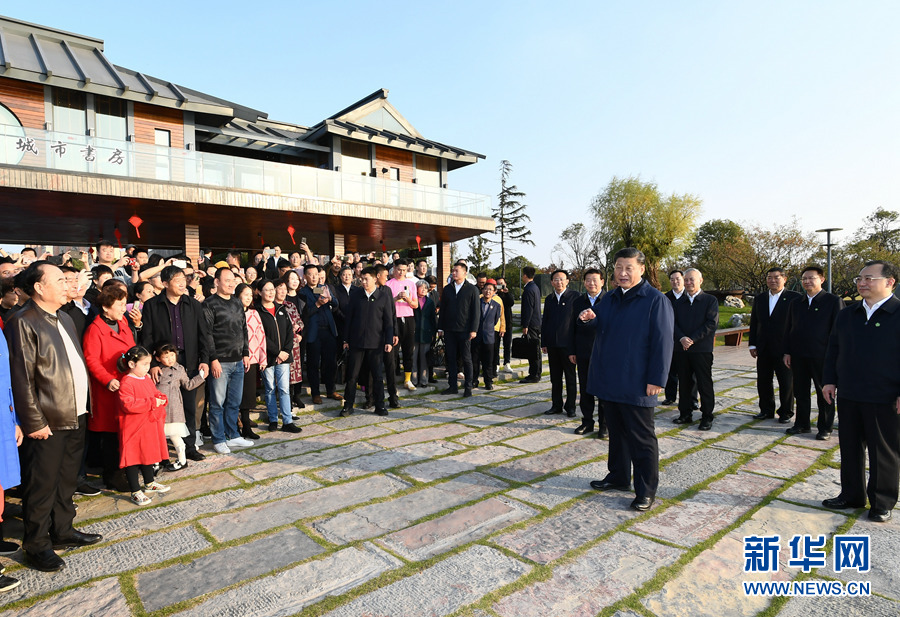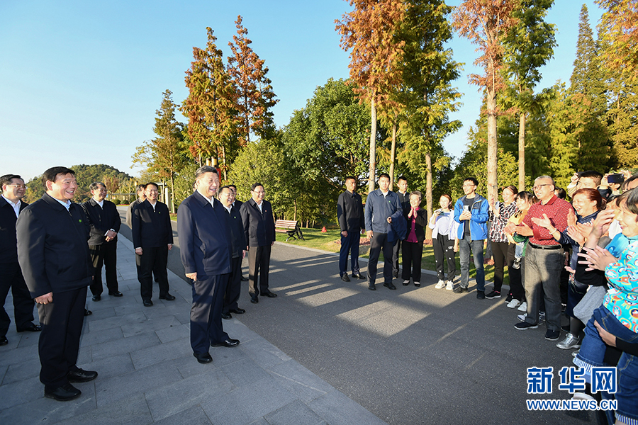 11月12日至13日,中共中央總書記、國家主席、中央軍委主席習近平在江蘇考察。這是13日下午,習近平在揚州市運河三灣生態(tài)文化公園考察時,同市民群眾親切交流。新華社記者 謝環(huán)馳 攝