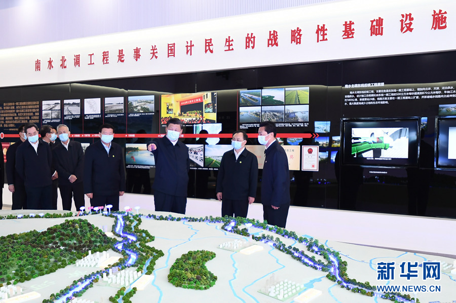 一個大型沙盤模型直觀地呈現了中國大地上水資源大范圍大規(guī)??鐓^(qū)域調配的壯闊景象,習近平總書記駐足凝望——