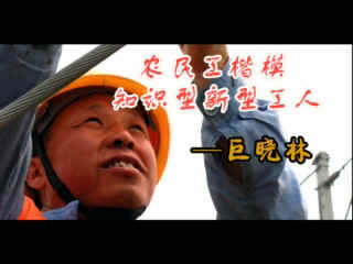巨曉林  男,漢族,中共黨員,1962年9月出生,陜西省岐山縣人,高中文化。1987年3月成為中國中鐵電氣化局一公司的農(nóng)民工,參加工作23年來,先后參與了大秦線、京鄭線、哈大線、遷曹線等十幾條國家重點(diǎn)電氣化鐵路工程的施工,創(chuàng)新施工方法43項(xiàng),創(chuàng)造經(jīng)濟(jì)效益600多萬元。他主編的《接觸網(wǎng)施工經(jīng)驗(yàn)和方法》,被配發(fā)給接觸網(wǎng)工作人員作為工具書。他熱愛生活,樂于助人,雖不善言辭,卻喜歡寫詩和畫畫。他用忠誠和勤奮贏得了領(lǐng)導(dǎo)和工友們的一致贊揚(yáng),用智慧和汗水譜寫出知識(shí)型新型工人的精彩華章。