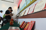 記者們查看巨曉林的詩歌、漫畫和獲得的榮譽(yù)證書