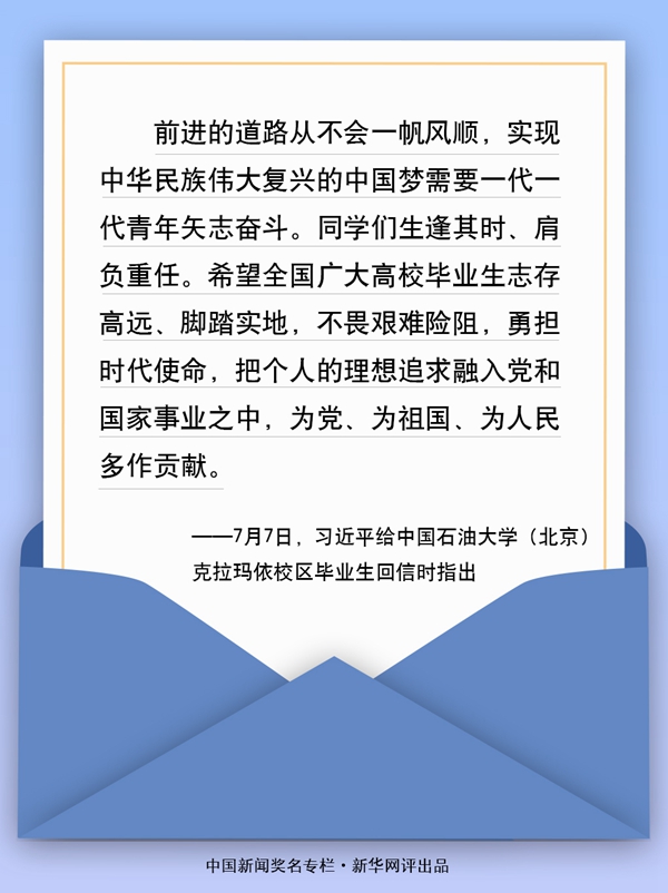 近日,中國石油大學(北京)克拉瑪依校區(qū)的118名畢業(yè)生給習近平總書記寫信,匯報了大學四年學習和思想上的收獲,表達了扎根西部、建設(shè)邊疆的堅強決心。總書記回信肯定他們到邊疆基層工作的選擇,并對廣大高校畢業(yè)生提出殷切期望。