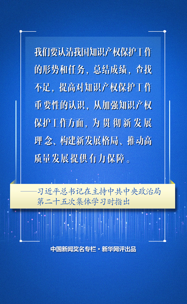 習近平在中央政治局第二十五次集體學習時強調 全面加強知識產權保護工作 激發(fā)創(chuàng)新活力推動構建新發(fā)展格局