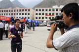 新華社音視頻部記者在甘肅舟曲進(jìn)行報(bào)道