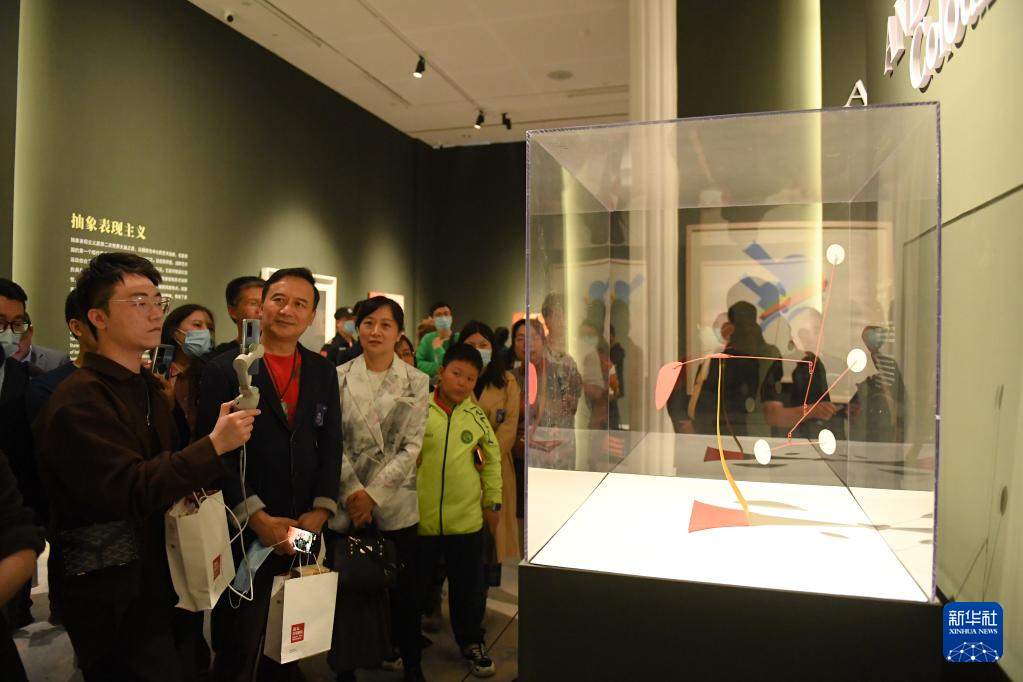 4月14日,观众参观亚历山大·考尔德装置作品《四个白色圆盘和红色橡胶》。