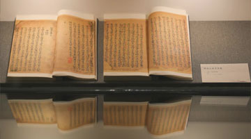 福建宁化县革命纪念馆的珍贵文物《中国工农红军军用号谱》亮相展览(4月17日摄)。