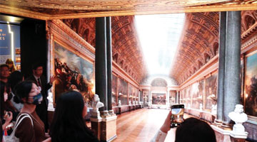 4月20日,观众在山东省美术馆展厅欣赏美术作品。