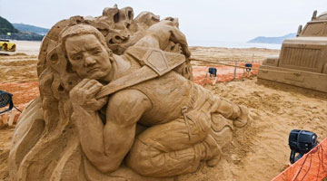 这是在北京故宫博物院展出的檀香木观音菩萨像(4月28日摄)。