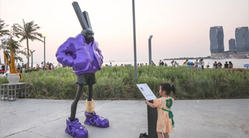 5月11日,游客在陕西历史博物馆参观唐三彩骆驼载乐俑。这件唐三彩骆驼载乐俑既是唐代文化艺术、制作工艺发达昌盛的重要物证,也见证了丝绸之路上艺术的交流与融合。