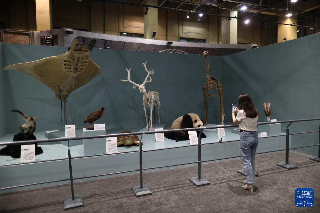 6月5日,参观者在国家自然博物馆内拍摄展品。