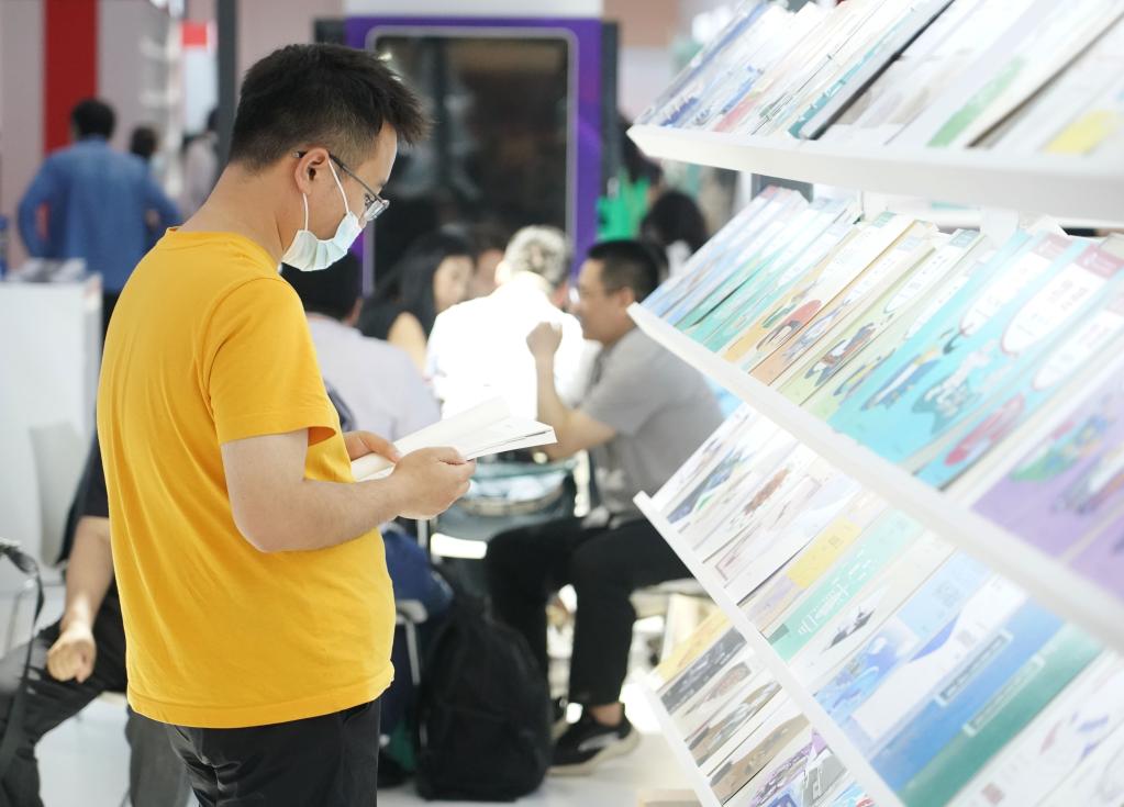 6月16日,在北京举行的第29届北京国际图书博览会上,外国出版商观看“美猴王系列”文创产品。