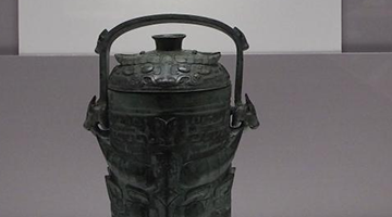 7月14日晚,参观者在上海博物馆的中国古代陶瓷馆观看青釉弦纹尊。
