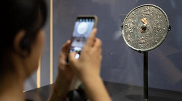 8月23日,一名游客在秦始皇兵马俑博物馆参观时高举手机拍照。