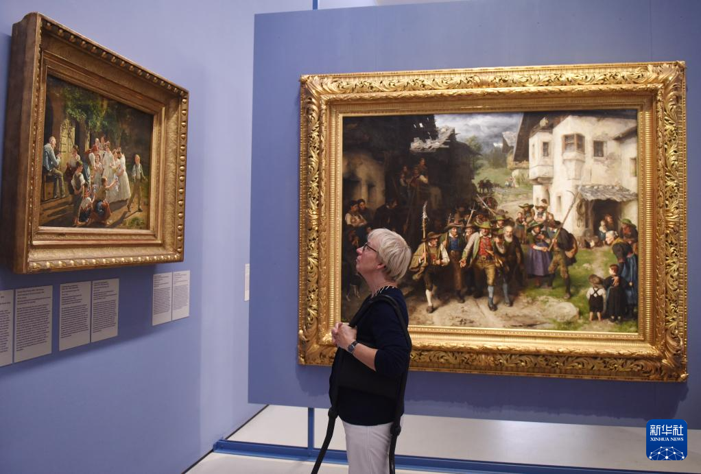 8月31日,在奥地利维也纳,一名观众在下美景宫内参观展品。