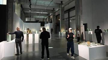 11月8日,在湖南省浏阳市小河乡乌石村的乌石当代艺术馆,农民在整理石头画。