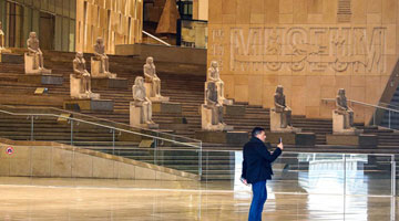 11月24日,在香港会议展览中心,观众拍摄清雍正青花釉里红云海腾龙纹天球瓶。