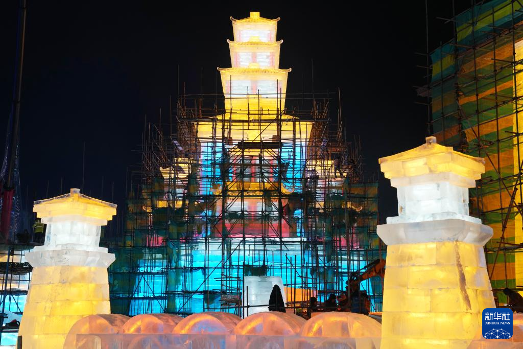以“龙腾冰雪 逐梦亚冬”为主题的第二十五届哈尔滨冰雪大世界将于12月18日开园迎客。目前在园区内,林立的塔吊、穿梭的机械交织成一首忙碌的建设“交响曲”。本届哈尔滨冰雪大世界将使用25万立方米的冰和雪,倾力打造一个梦幻精彩的冰雪童话世界。