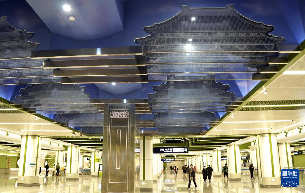 这是新宫地铁站内展示古都历史的屋顶装饰(1月20日摄)。