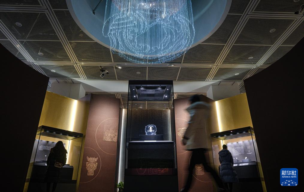 2月1日,参观者在“玉神——石家河玉文化特展”上参观。
