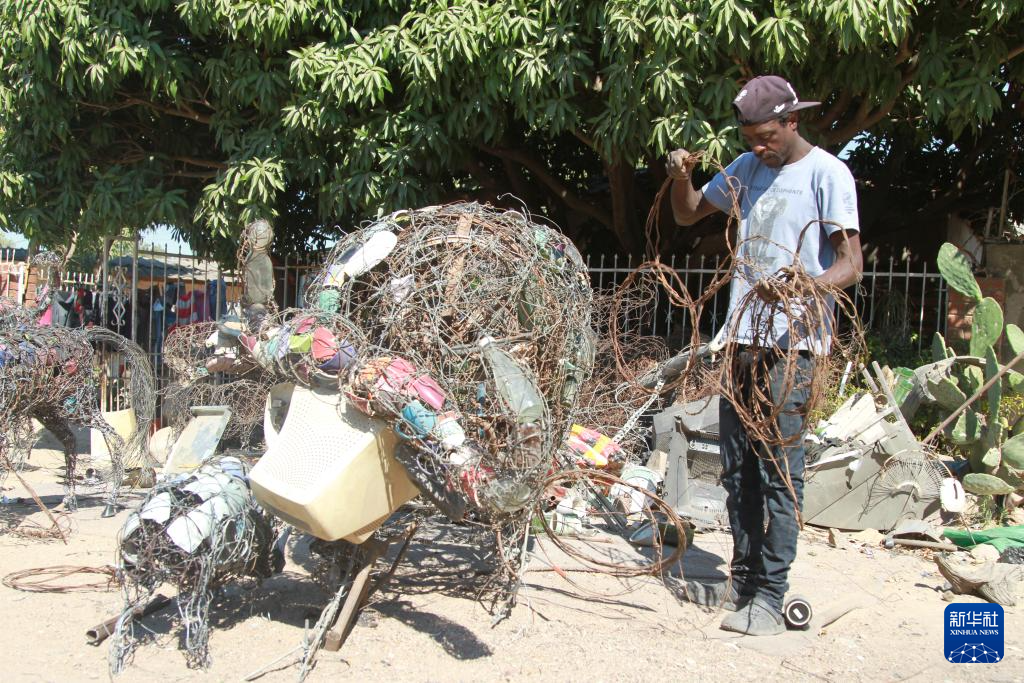 约翰逊·祖泽是津巴布韦一名艺术家,他利用从保护区收集而来的猎套和其他废旧物品制作艺术品,以唤起人们对野生动物保护的关注。
