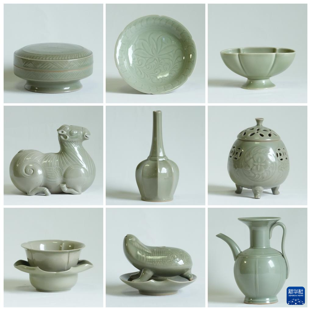 这是施尚剑烧制的越窑青瓷作品(拼版照片,4月17日摄)。