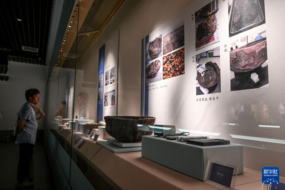 5月18日,人们在位于宁夏银川的宁夏博物馆参观“匠心复华”文物保护修复成果展。