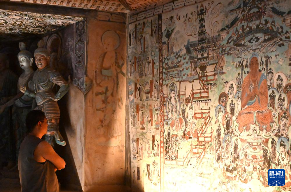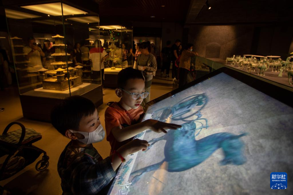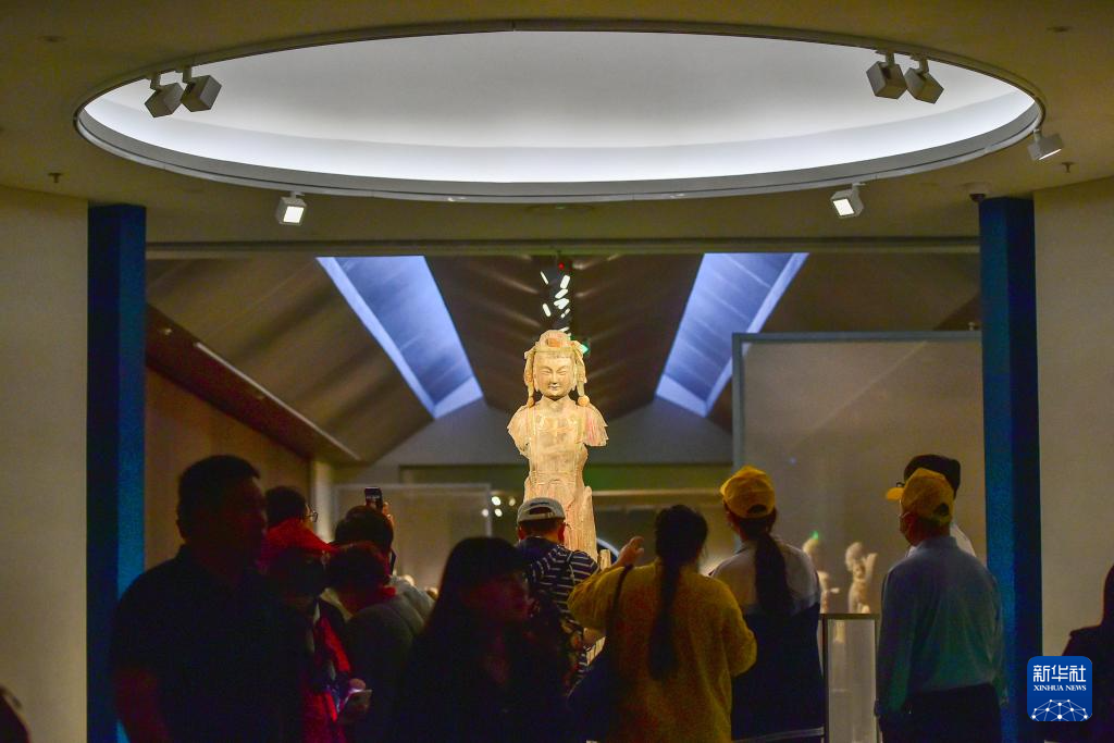 5月18日,游客在甘肃省敦煌市博物馆参观。