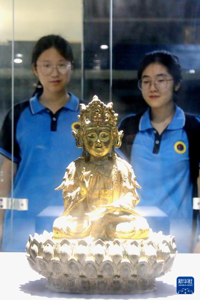 5月18日,在辽宁省博物馆,参观者在观看“山海有情·大漠鸣沙—在辽宁遇见敦煌”敦煌文化特展。