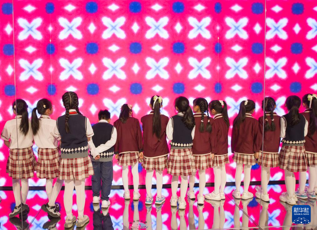 5月18日,在江苏省南通扎染博物馆,海安经济开发区实验小学的学生在参观。