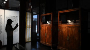 5月26日,嘉宾在“彩画千年——中国官式彩画传承与创新展”上参观。