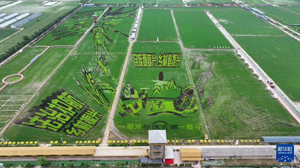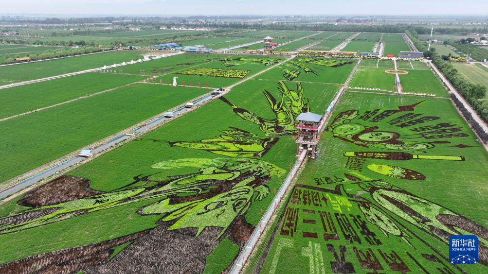 这是6月18日在稻渔空间乡村生态观光园拍摄的巨幅稻田画(无人机照片)。