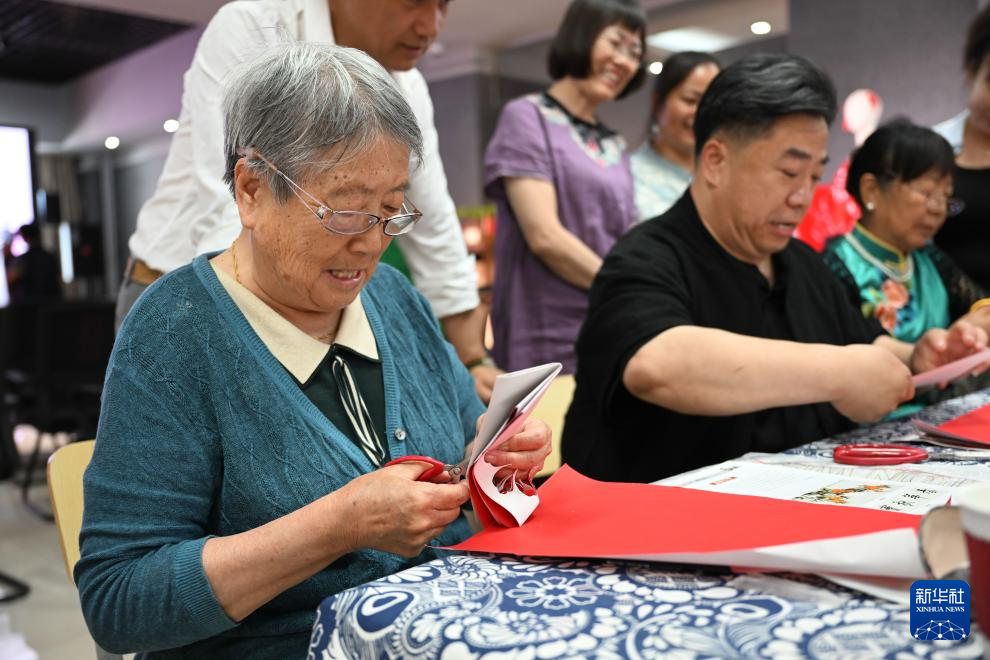 6月20日,剪纸艺术家在呼和浩特职业学院美术馆创作剪纸作品。